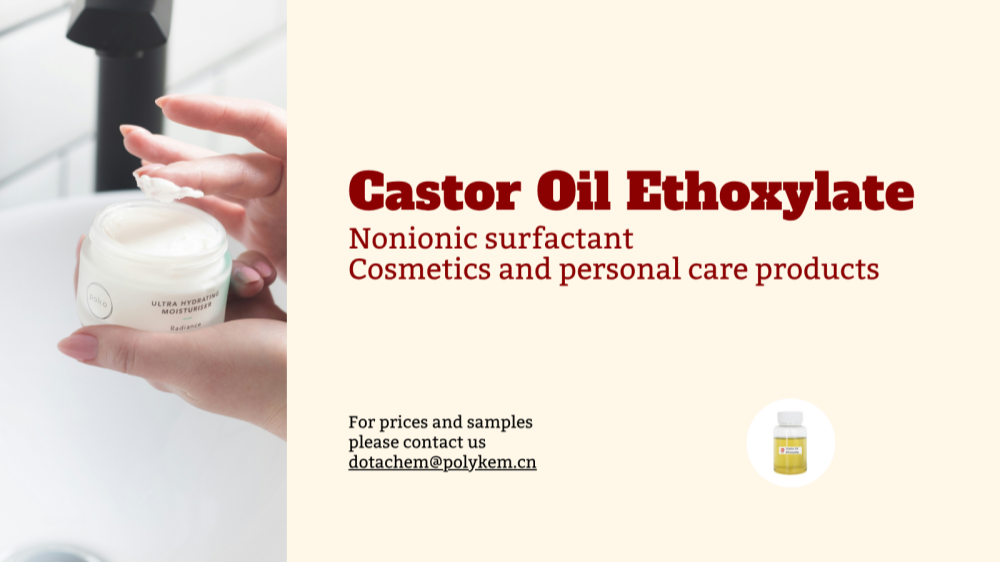 Касторове масло етоксилат- неіонна поверхнево -активна речовина, що виробляється реакцією природного касторового олії з оксидом етилену. Він має чудові емульгуючі здібності та мастильність, і широко використовується в промислових галузях, а також в особистому догляді та продуктах з прибирання домогосподарств.